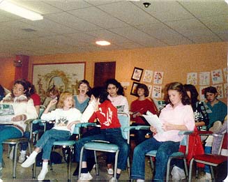Mary Clare Demaree and Michelle Dommergue. Nancy Gleason doesn't look too happy. Heather Martin is in the background.
