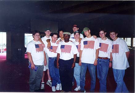Concert Choir prepares to leave (or is just returning) at the airport. The choir traditionally sang We Gather before leaving and when returning.