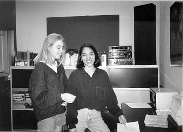 Vicki Malawey and Sheila Abichandani in the choir office.