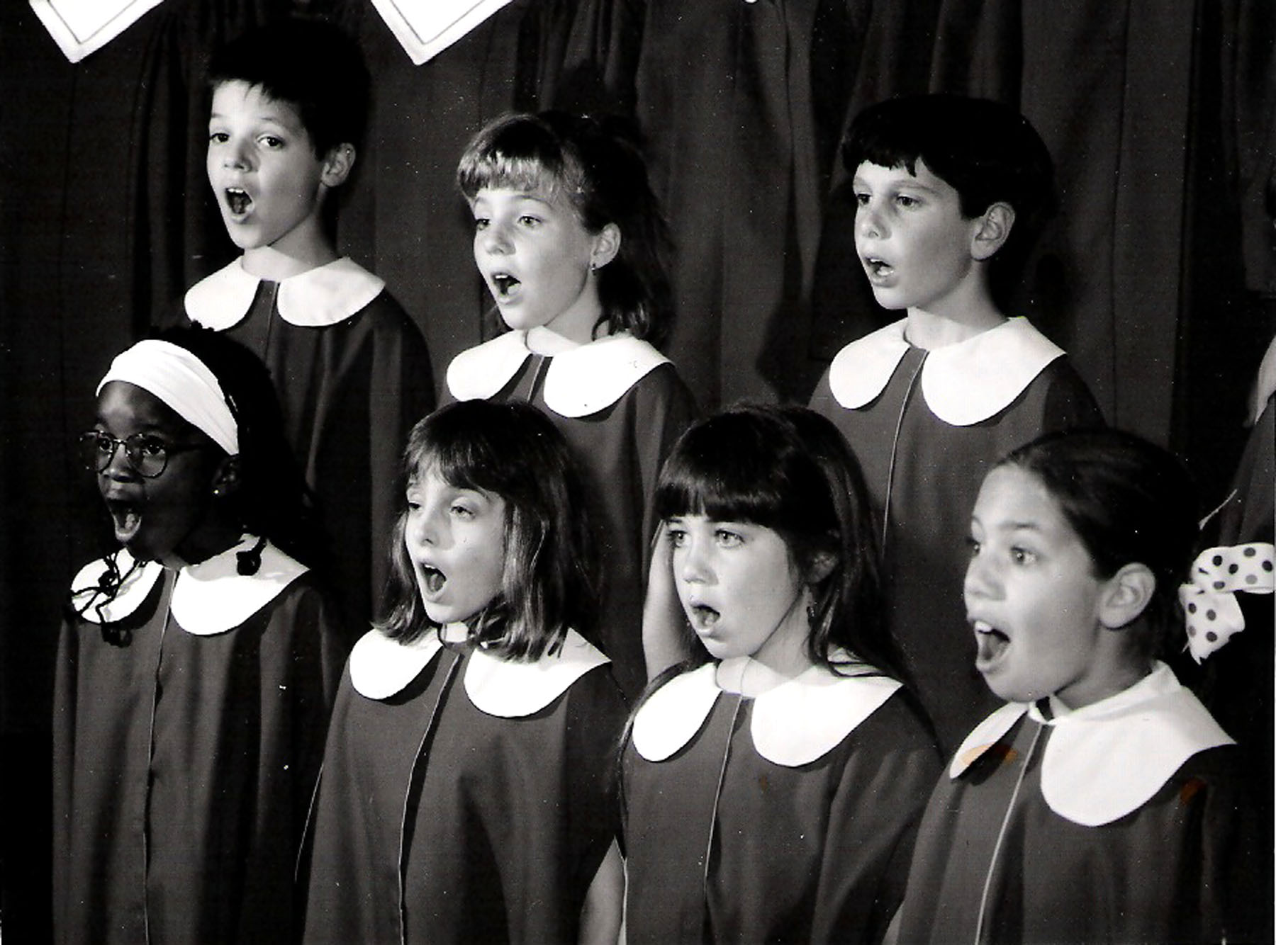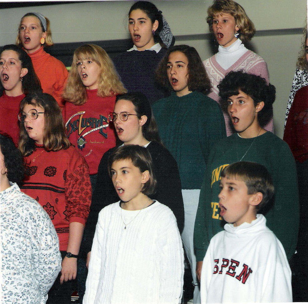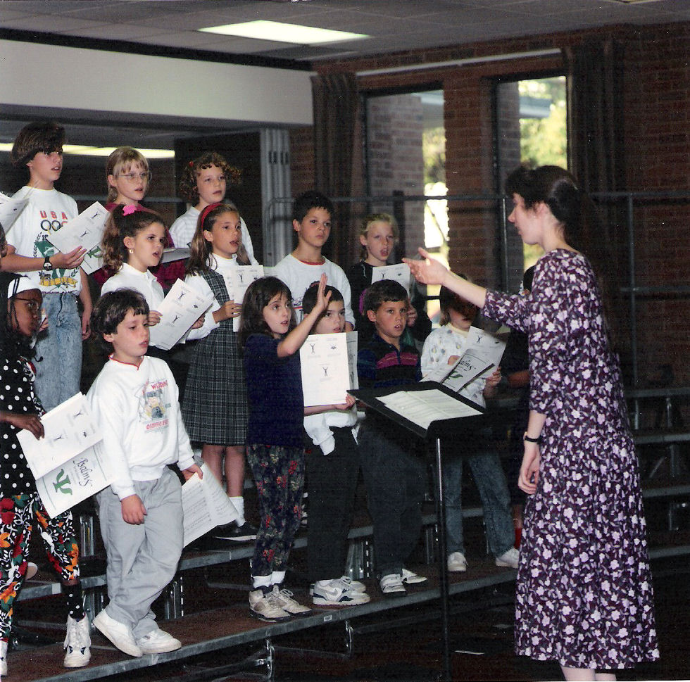 A picture of Ms. Donaldson directing Childrens Choir in the early 1990s. Several of these kids have now graduated through the choirs.